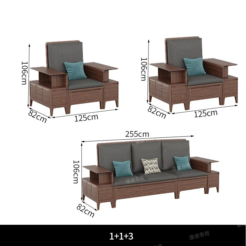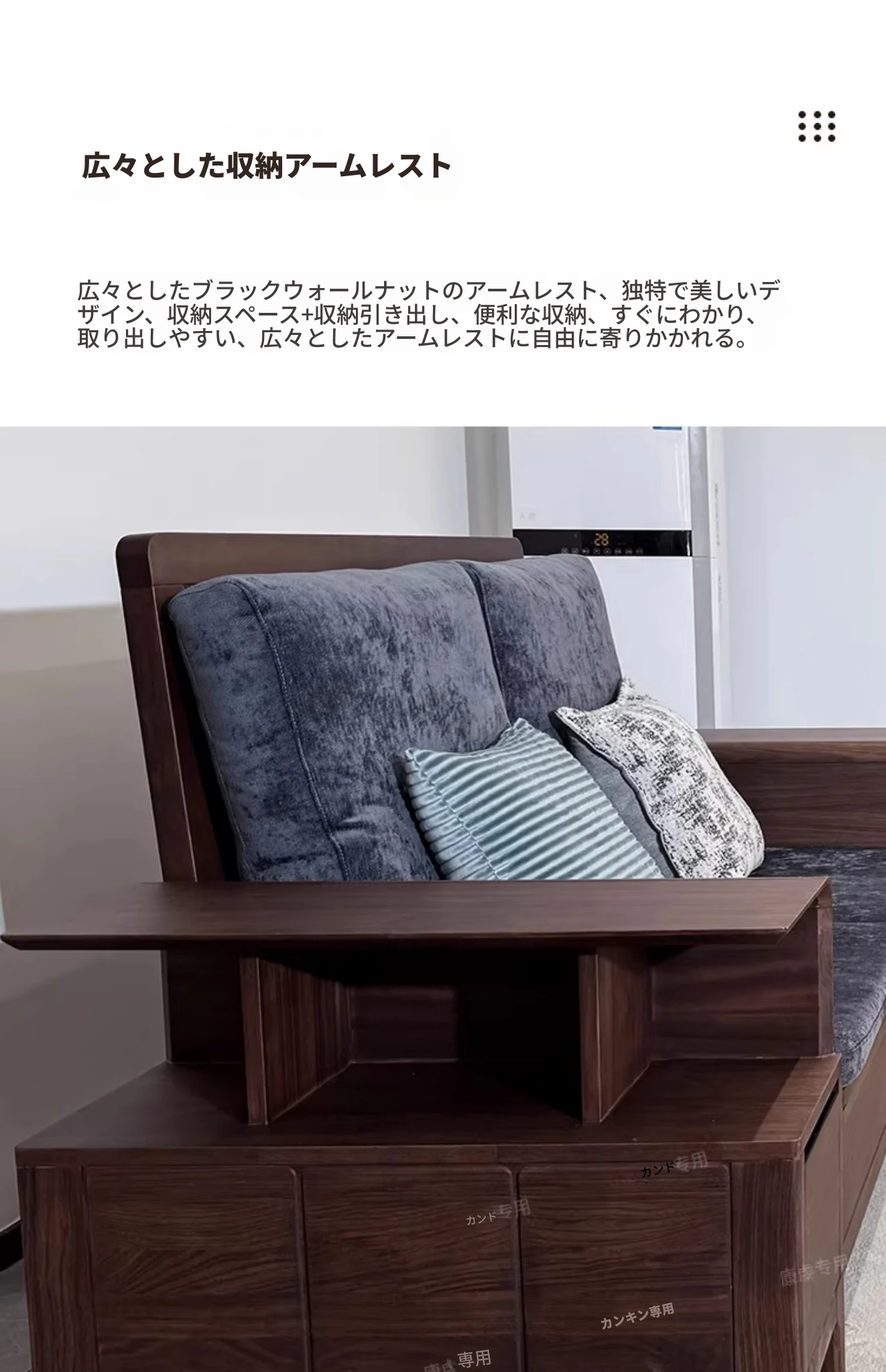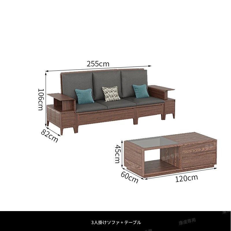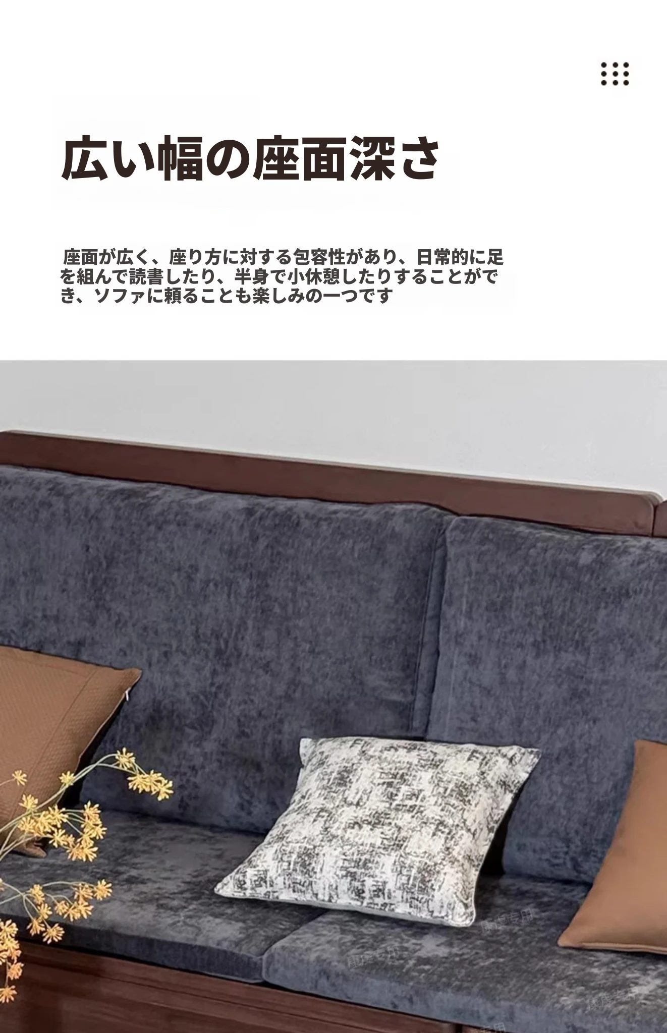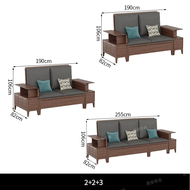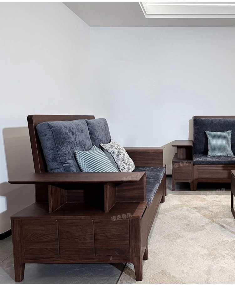 モダンシンプルなブラックウォールナット無垢材ソファセット - 家庭にぴったりな中華スタイルのストレートソファで、リビングを洗練された空間に変えます!