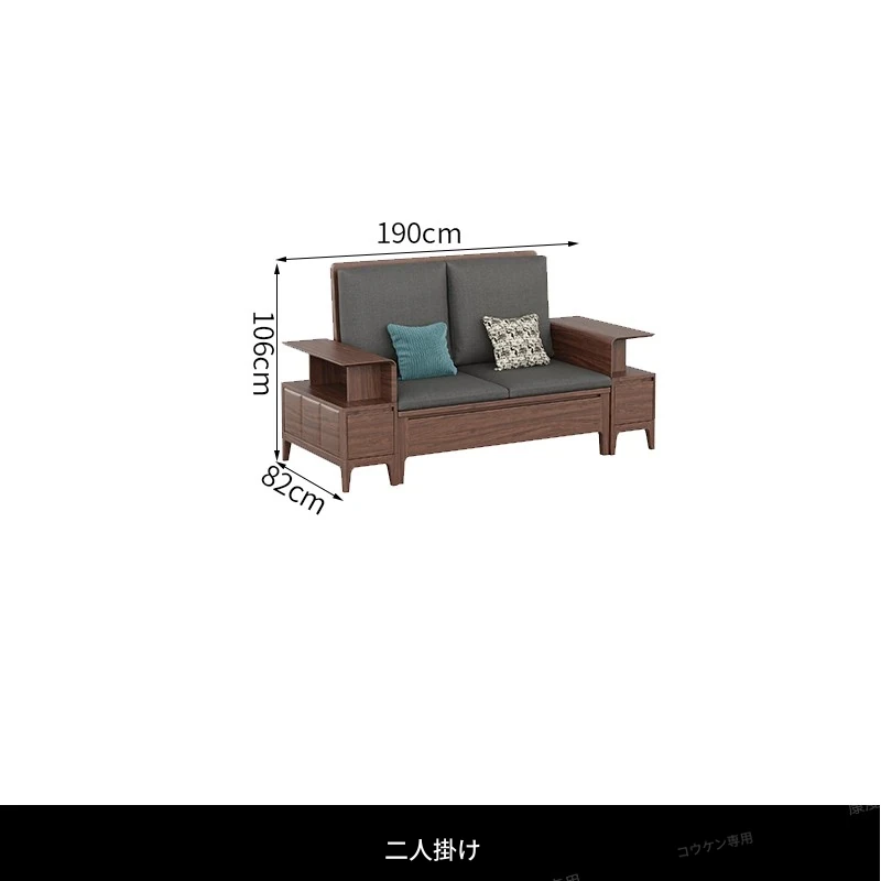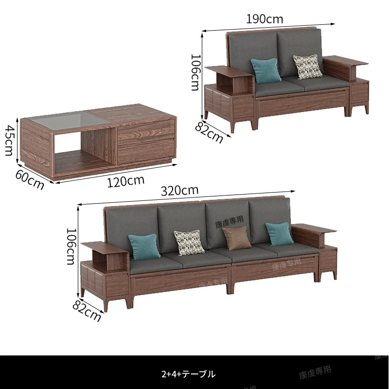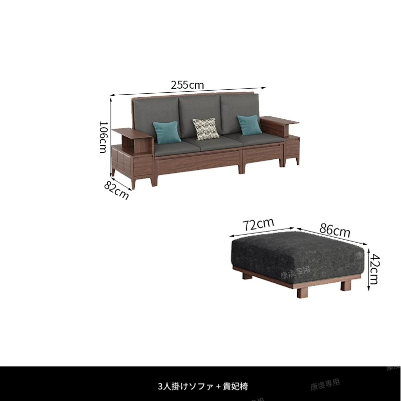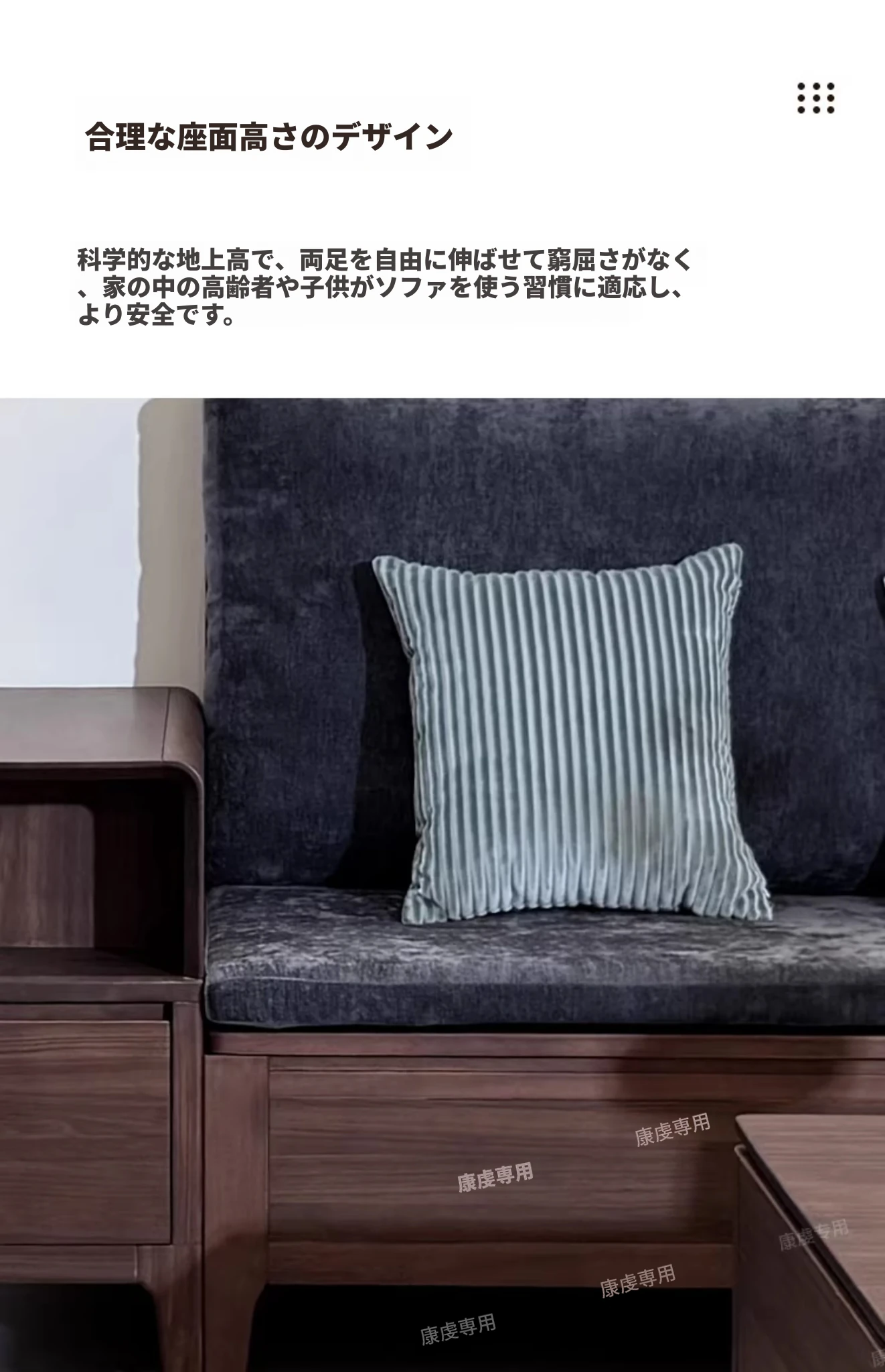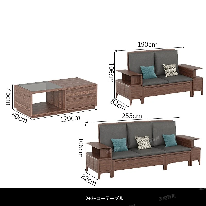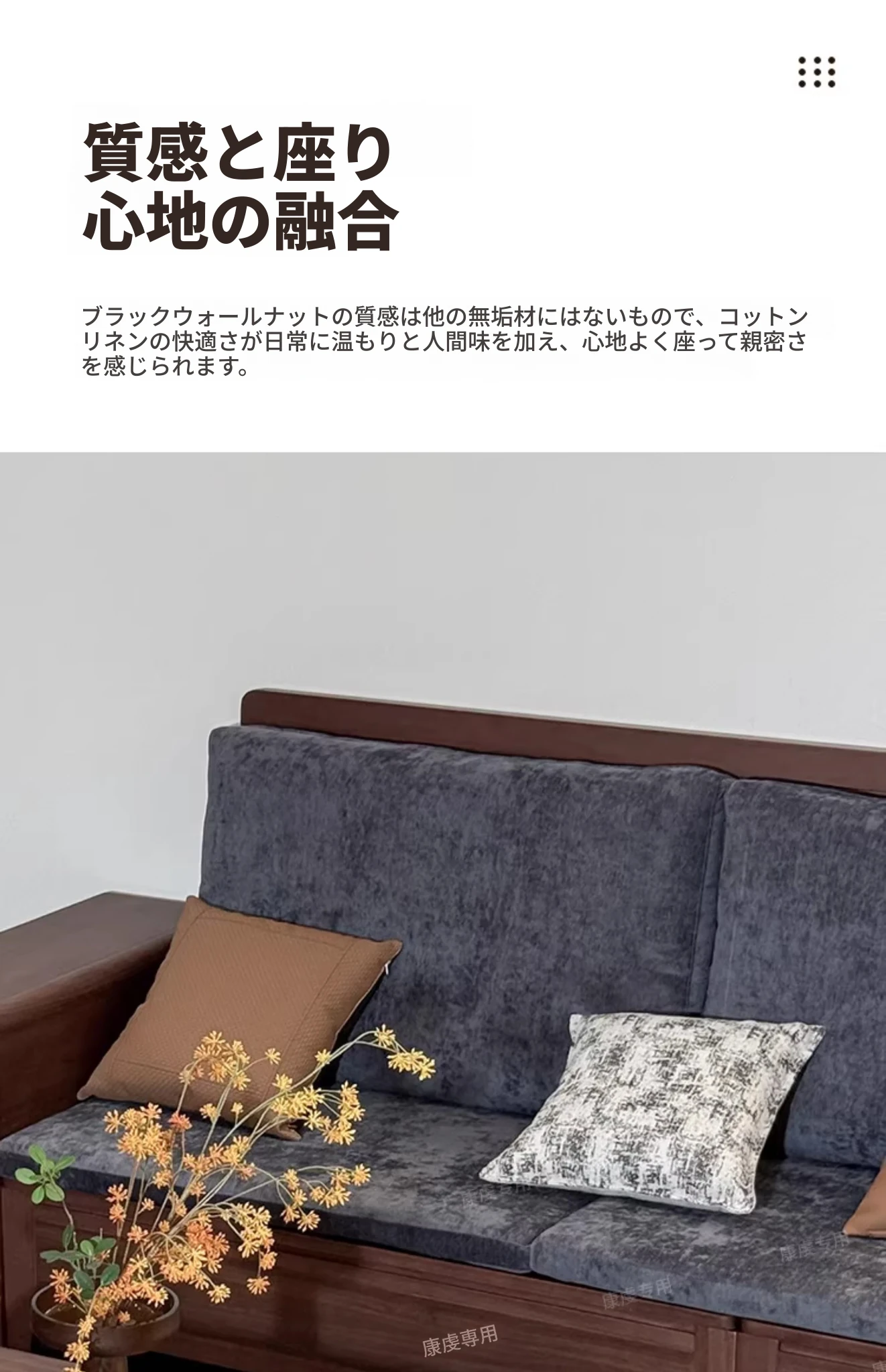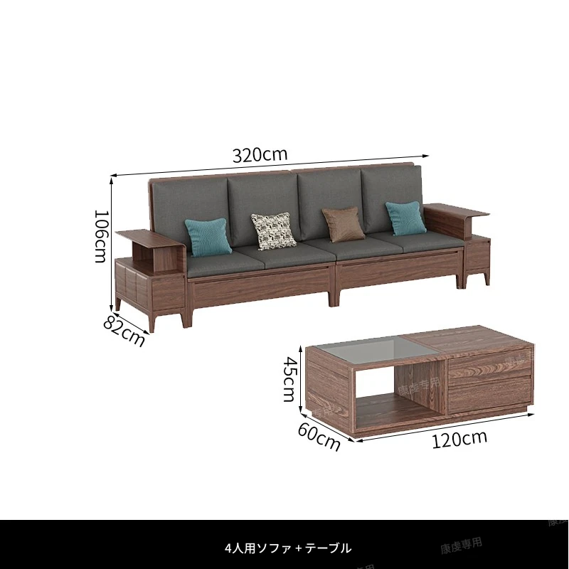 モダンシンプルなブラックウォールナット無垢材ソファセット - 家庭にぴったりな中華スタイルのストレートソファで、リビングを洗練された空間に変えます!