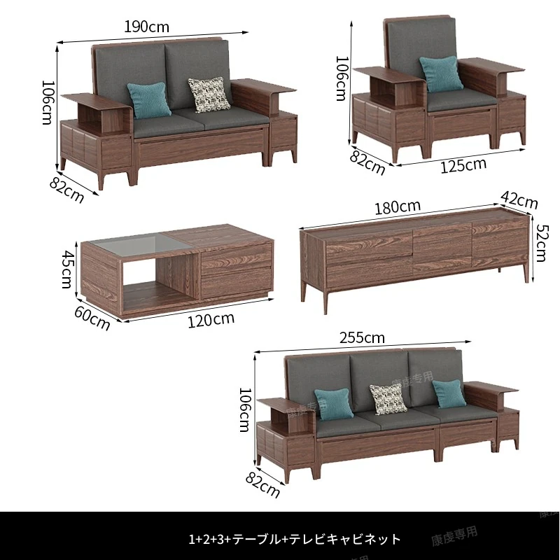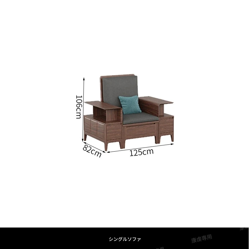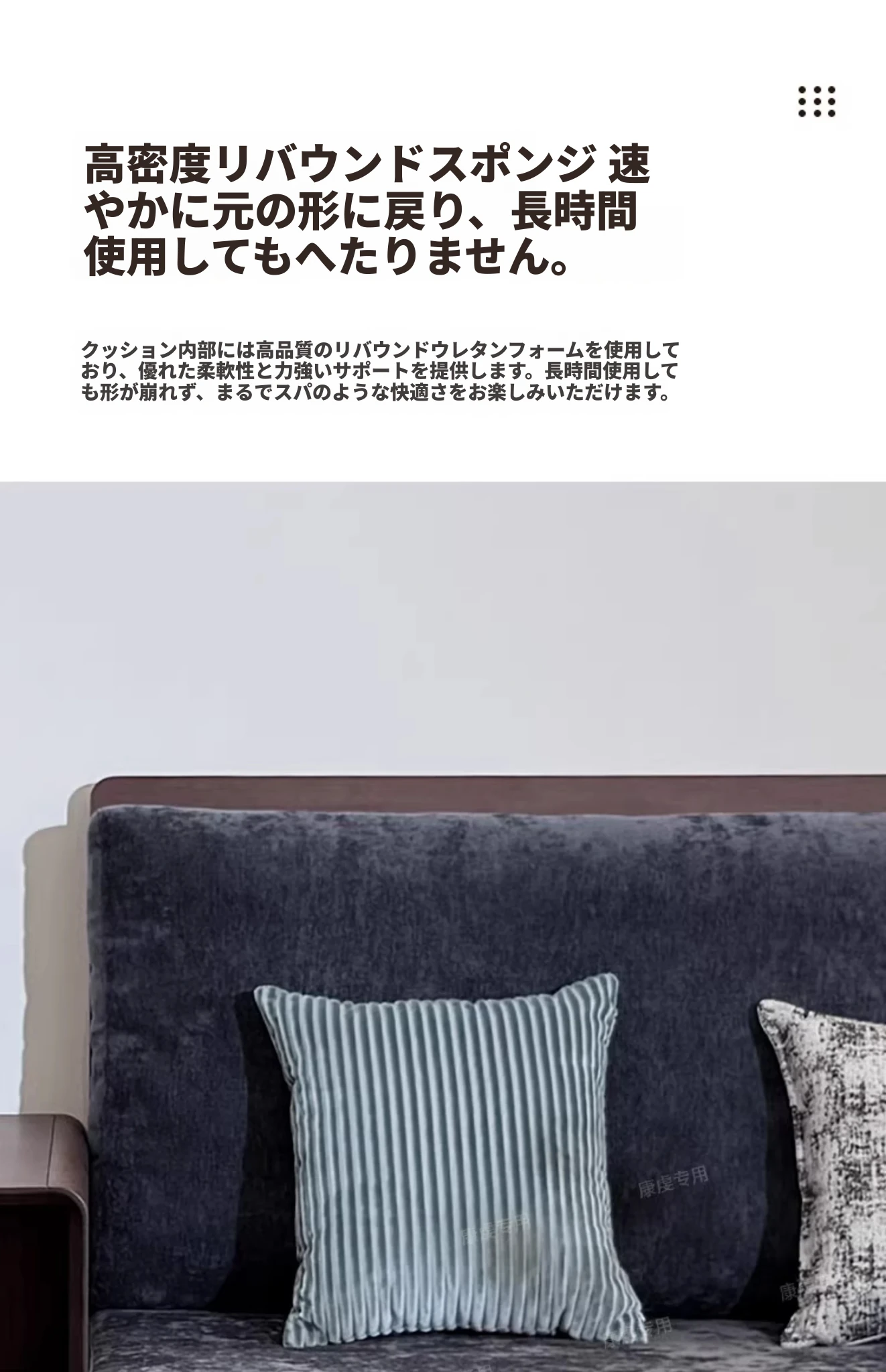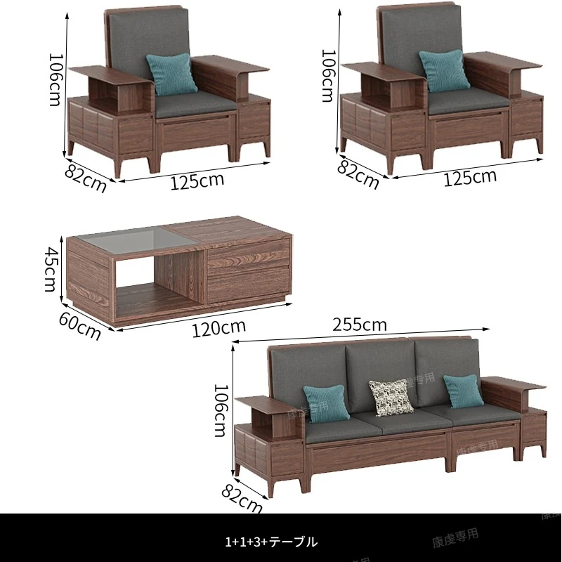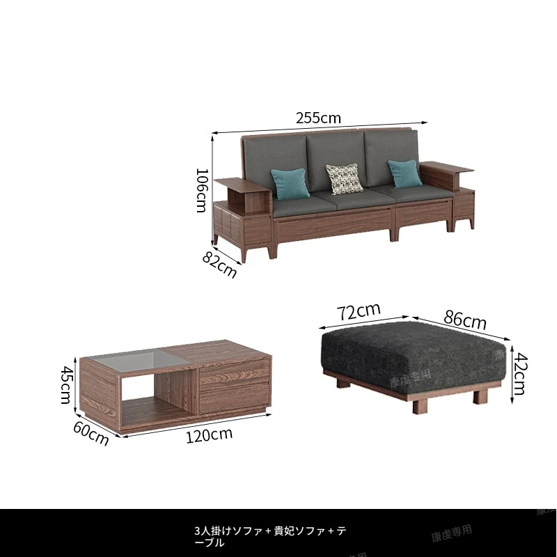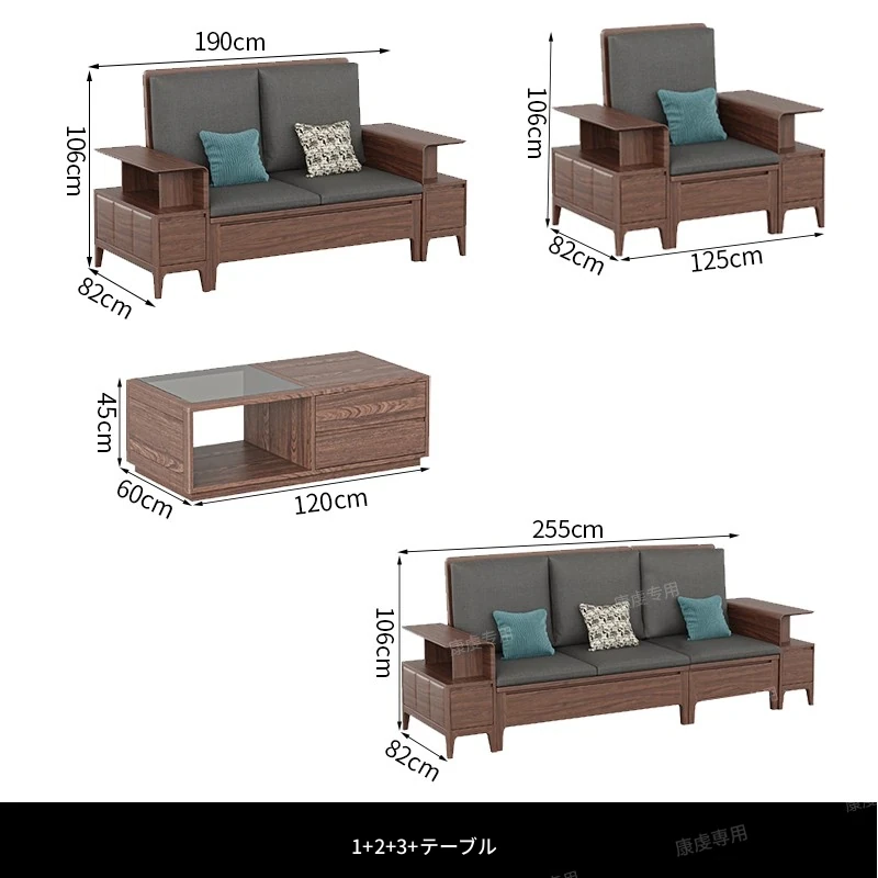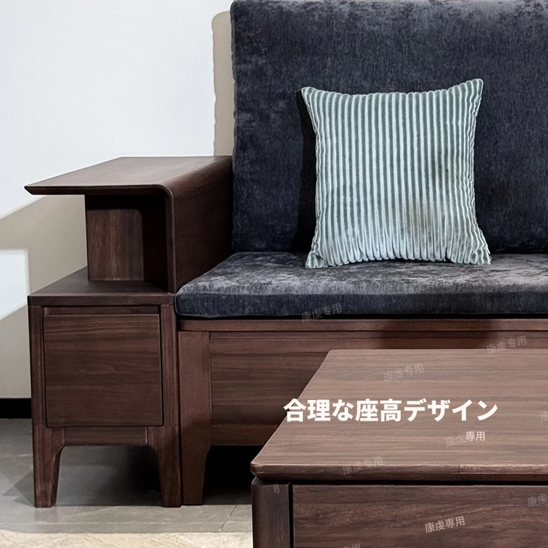 モダンシンプルなブラックウォールナット無垢材ソファセット - 家庭にぴったりな中華スタイルのストレートソファで、リビングを洗練された空間に変えます!