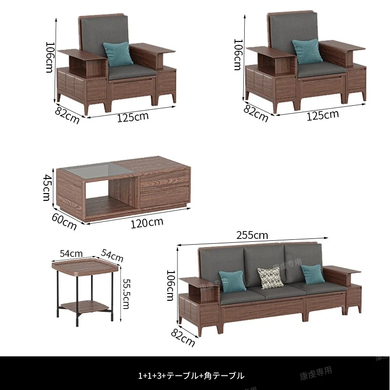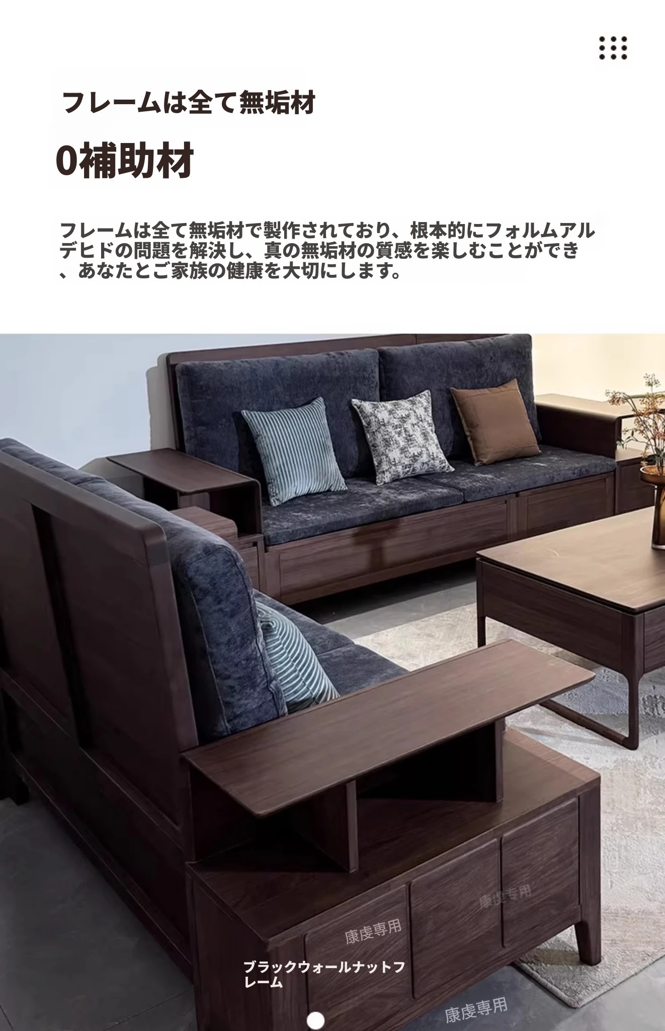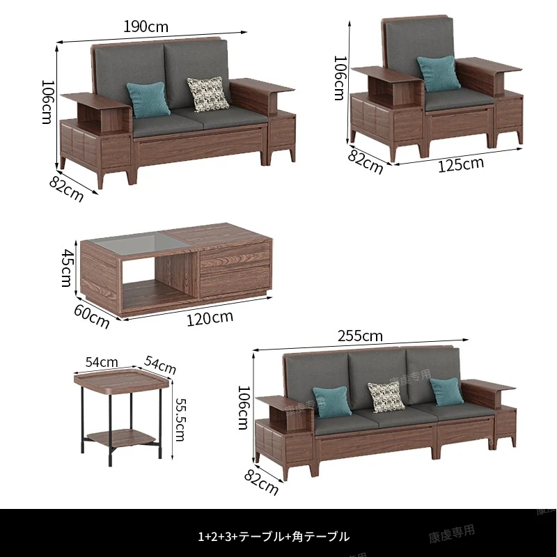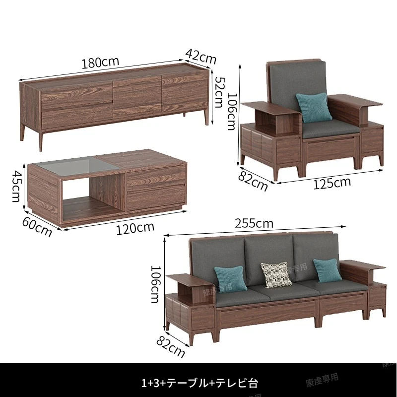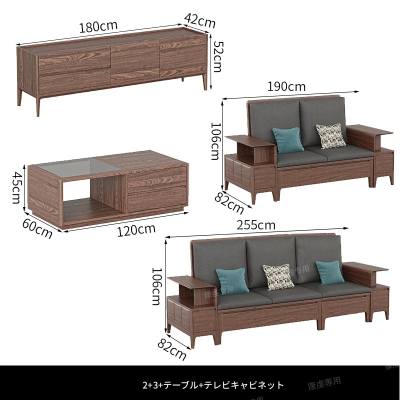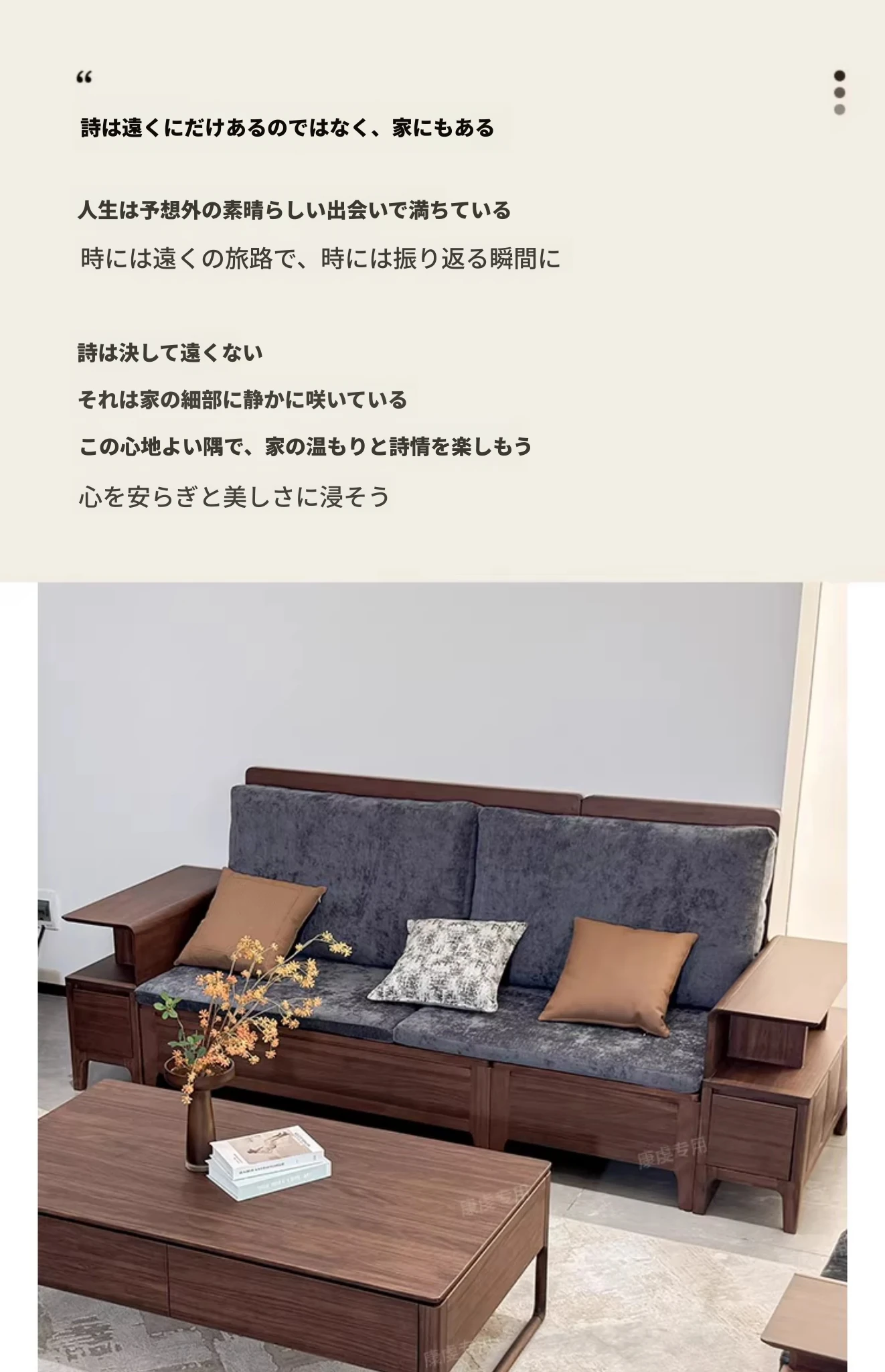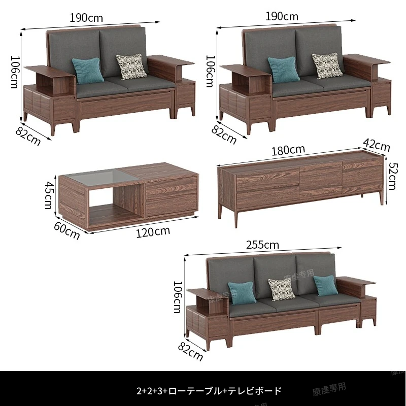 モダンシンプルなブラックウォールナット無垢材ソファセット - 家庭にぴったりな中華スタイルのストレートソファで、リビングを洗練された空間に変えます!