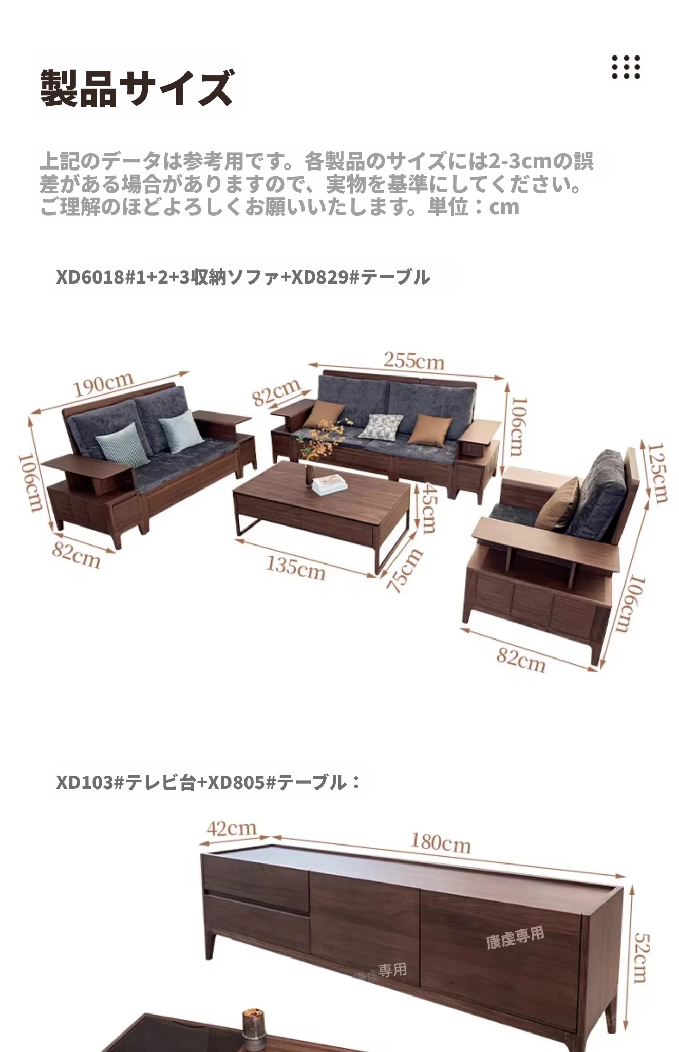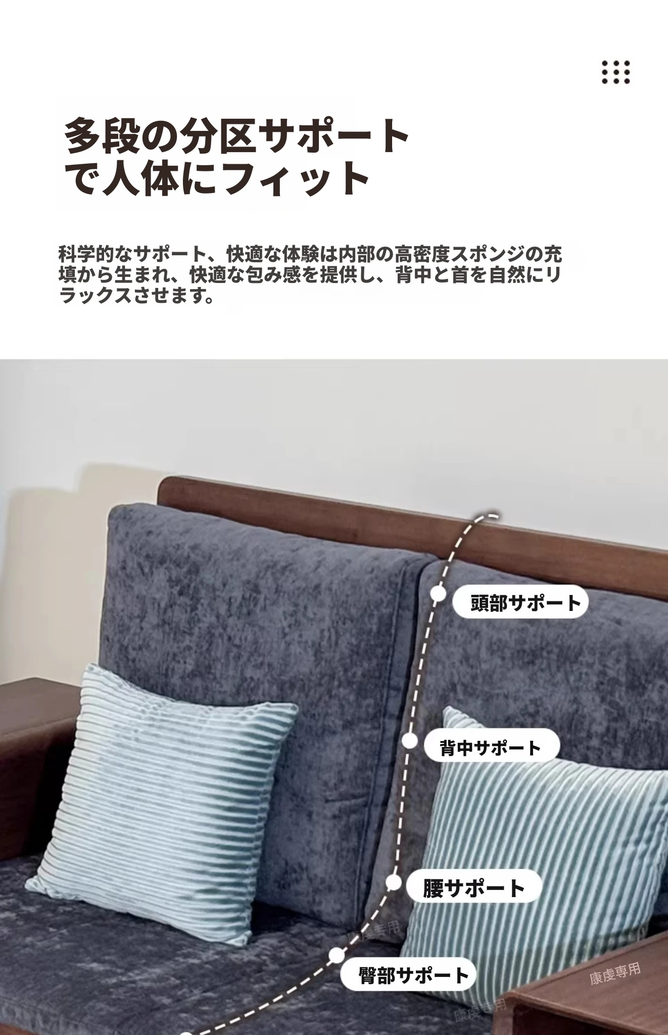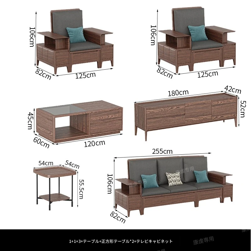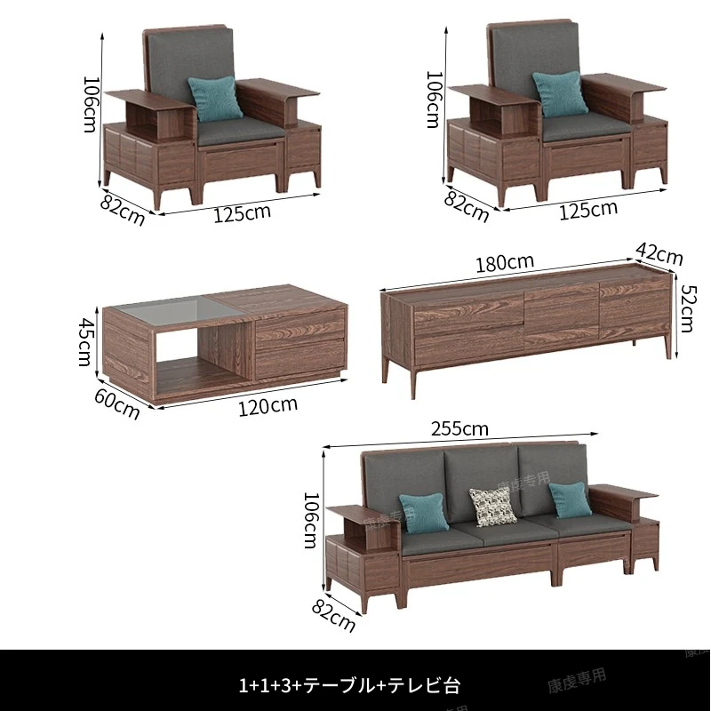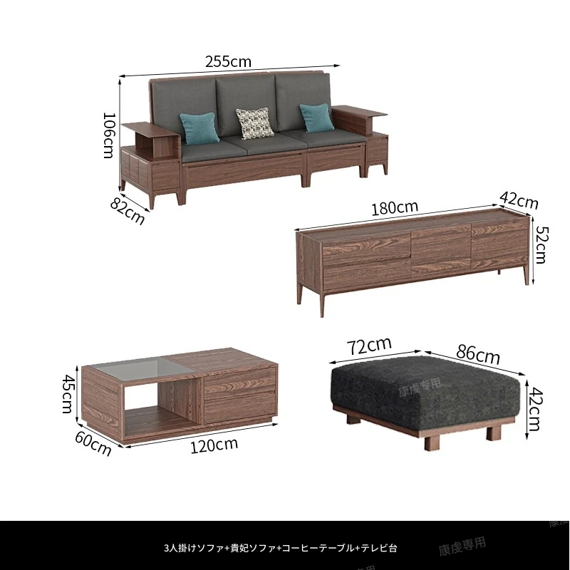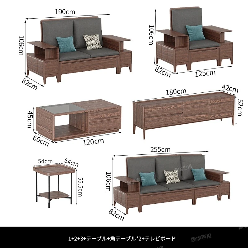 モダンシンプルなブラックウォールナット無垢材ソファセット - 家庭にぴったりな中華スタイルのストレートソファで、リビングを洗練された空間に変えます!