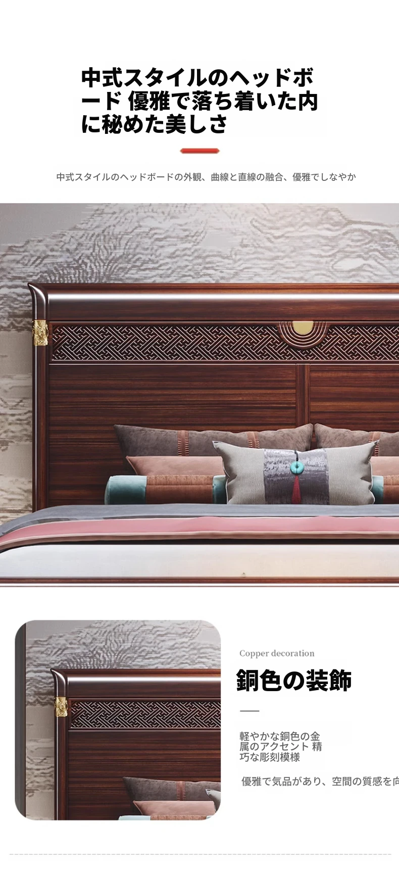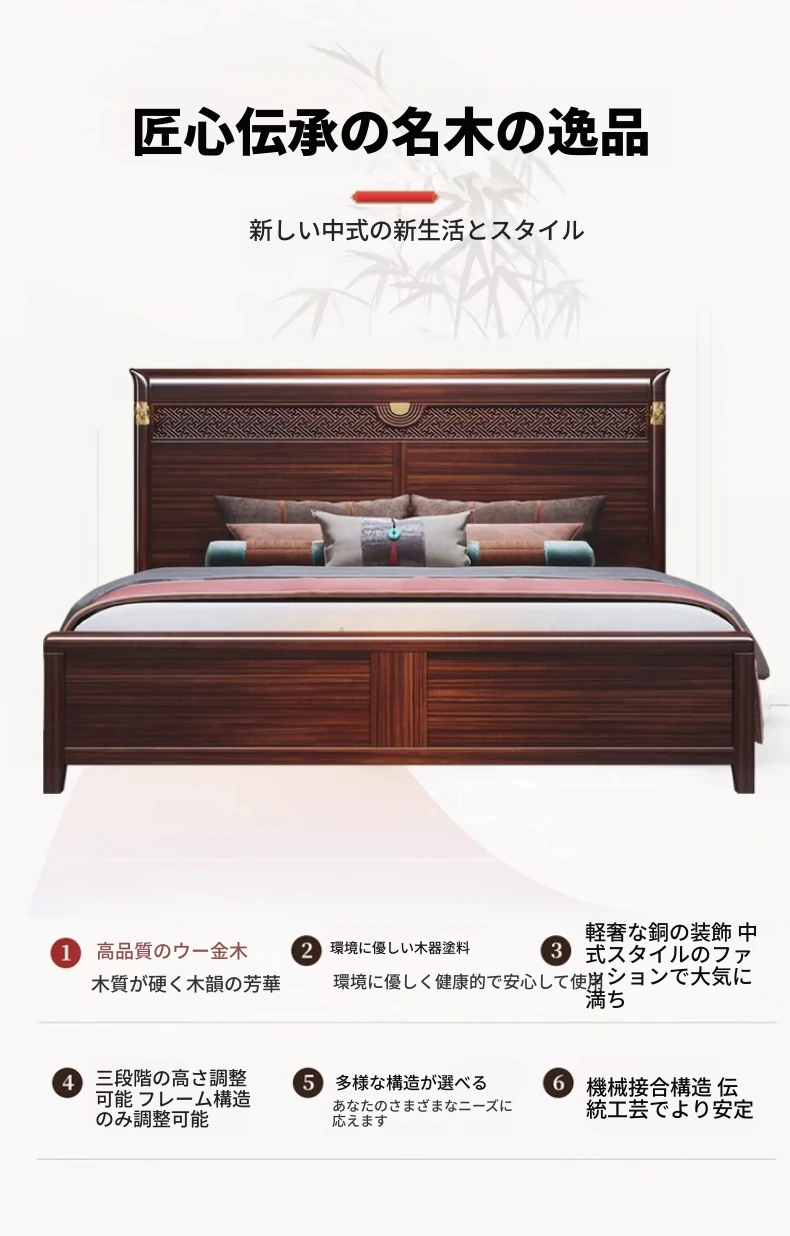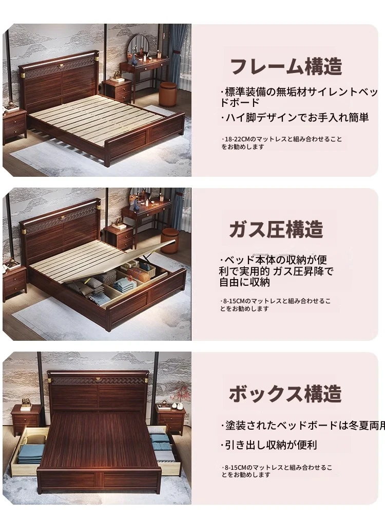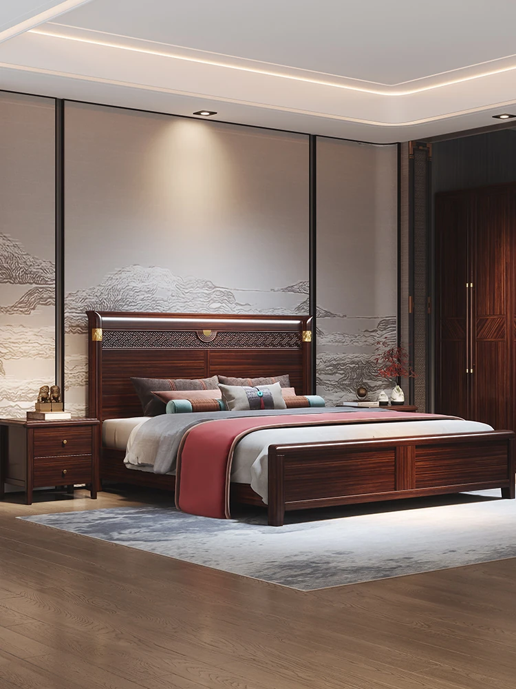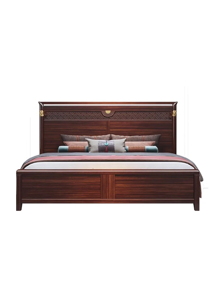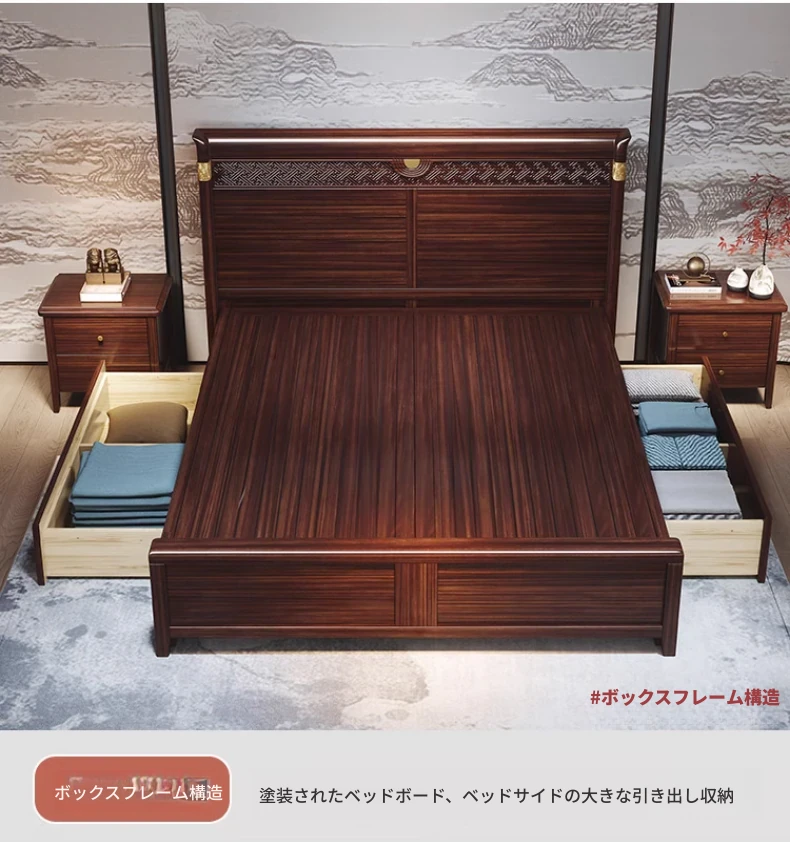 ウッディブラックウッド製の1.8mダブルベッド - モダンでシンプルなデザイン、1.5mの収納機能付き、主寝室に最適な新中式婚礼ベッド。快適な睡眠を提供します!