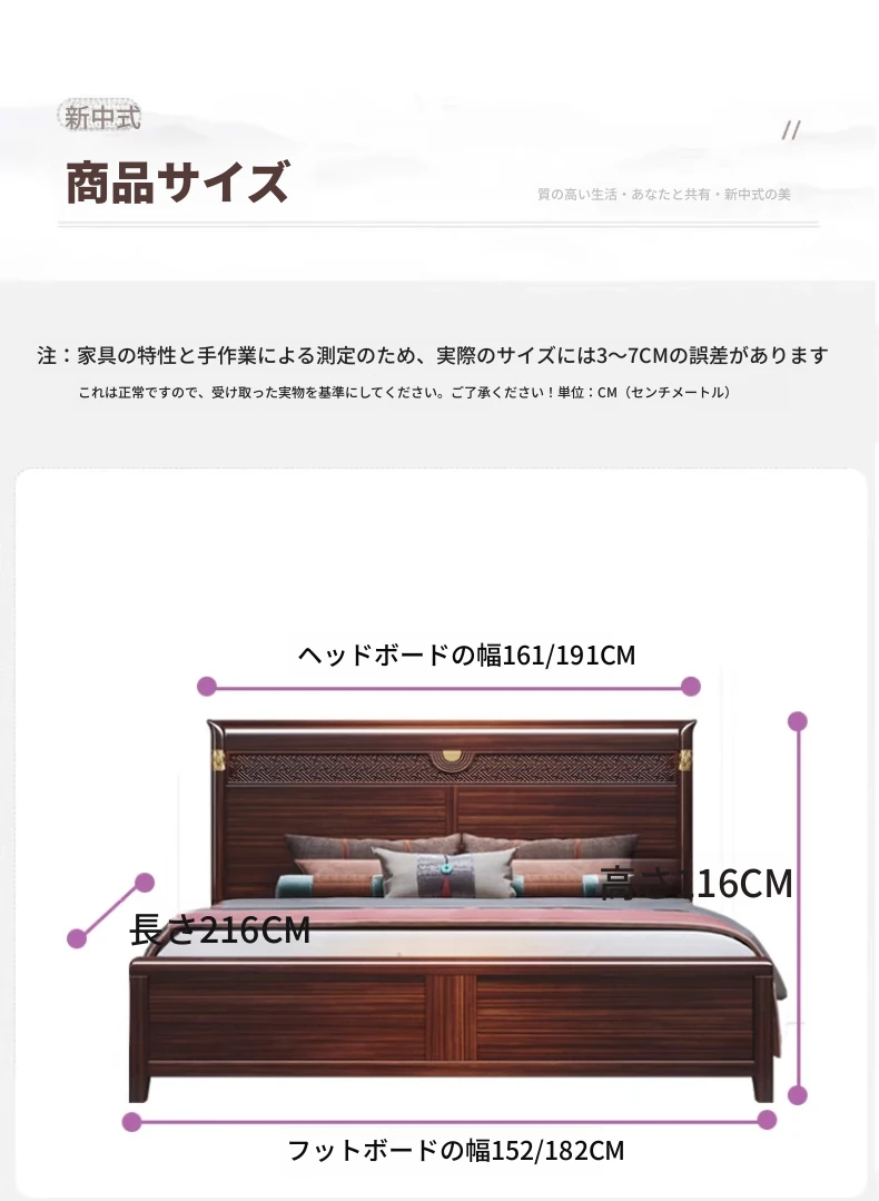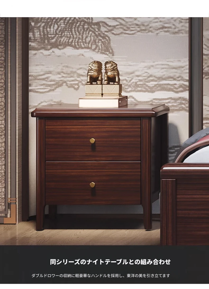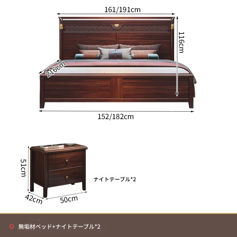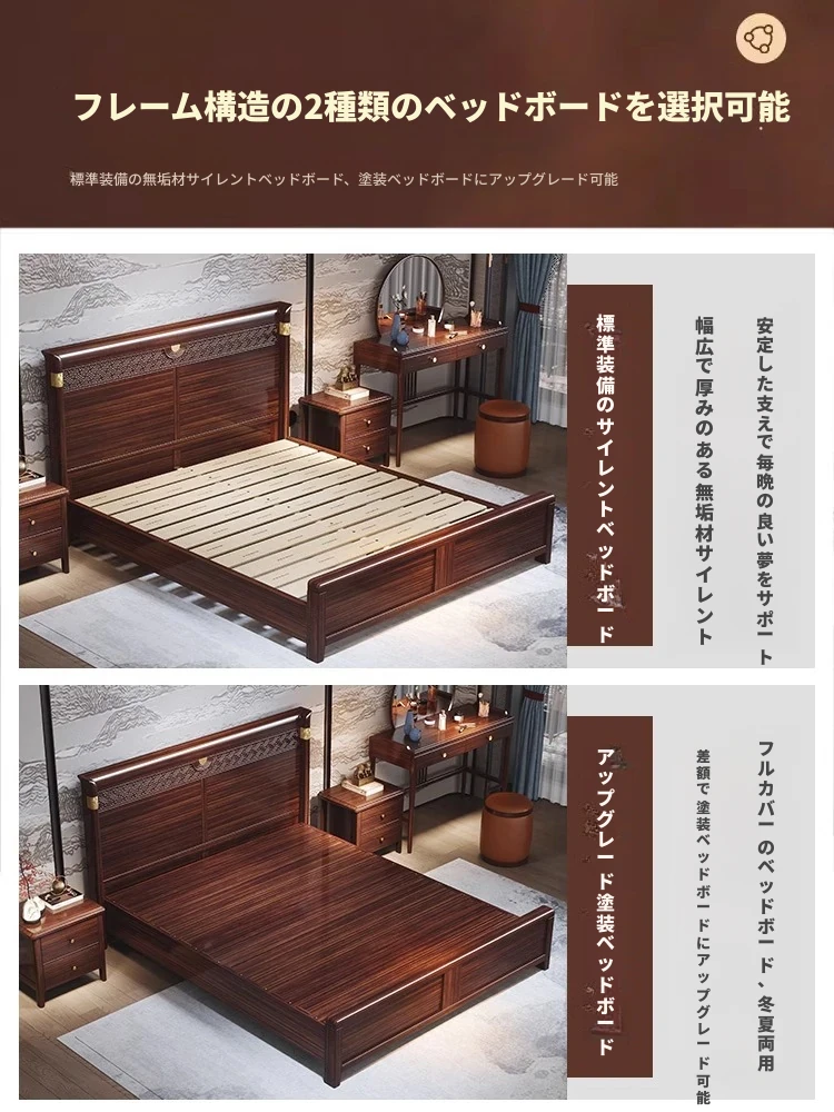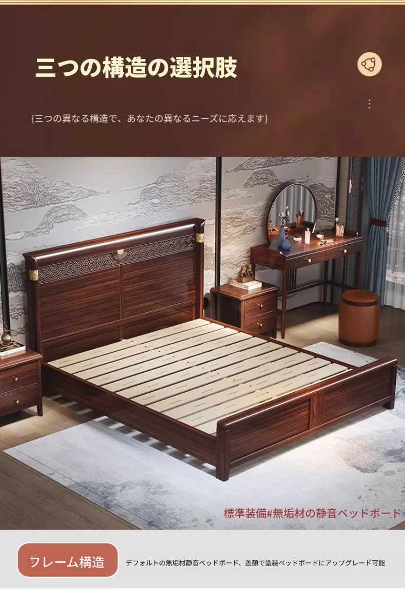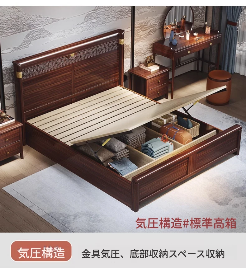 ウッディブラックウッド製の1.8mダブルベッド - モダンでシンプルなデザイン、1.5mの収納機能付き、主寝室に最適な新中式婚礼ベッド。快適な睡眠を提供します!
