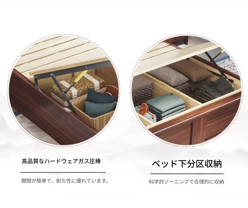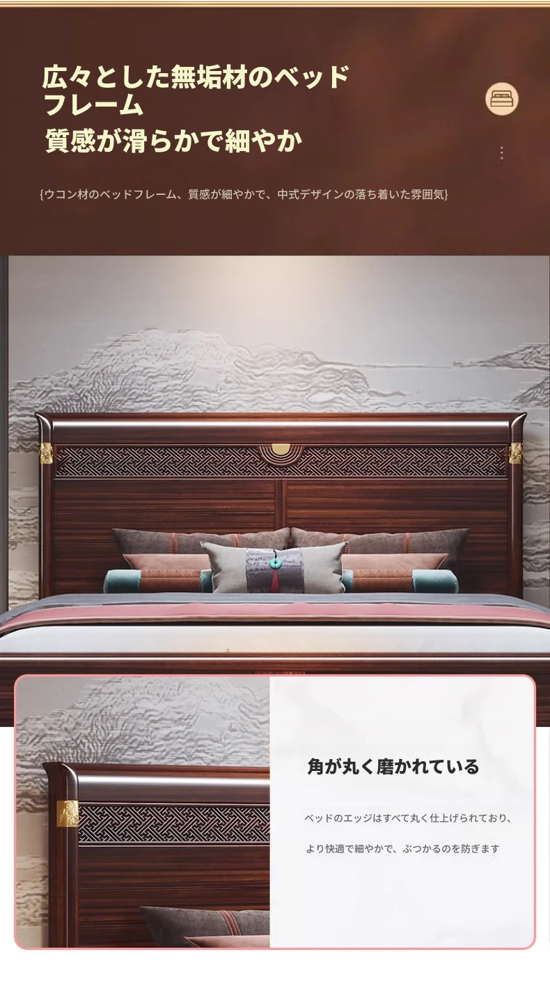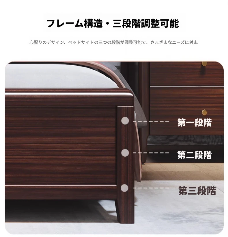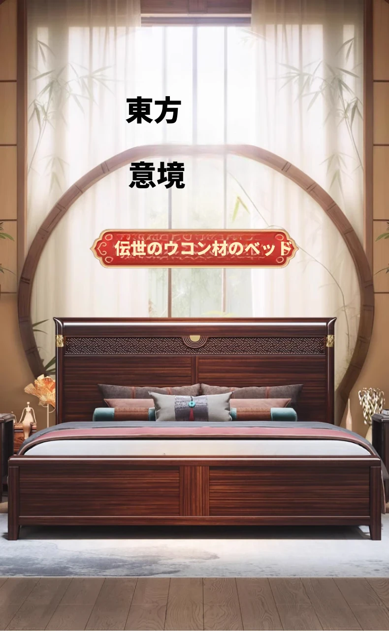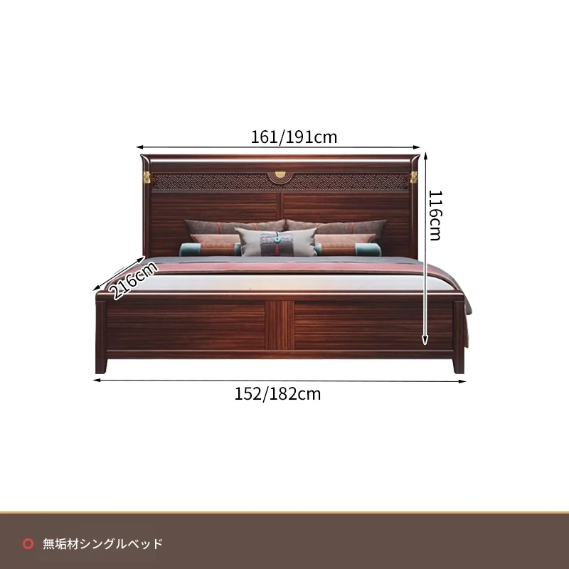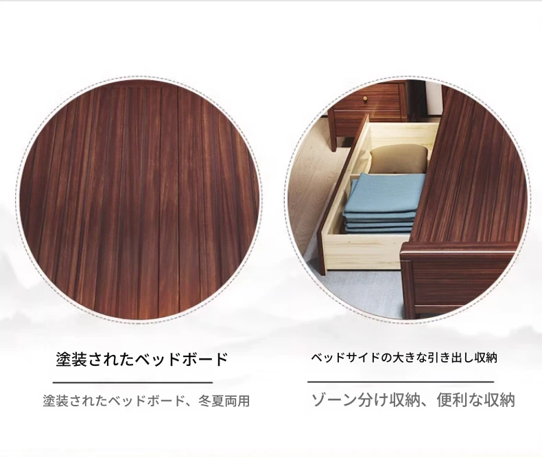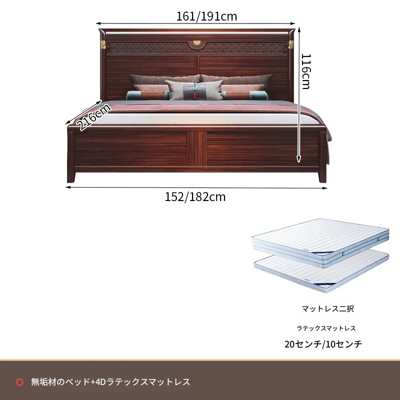 ウッディブラックウッド製の1.8mダブルベッド - モダンでシンプルなデザイン、1.5mの収納機能付き、主寝室に最適な新中式婚礼ベッド。快適な睡眠を提供します!