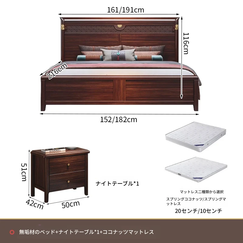 ベッド+ナイトスタンド*1+ココナッツマットレス