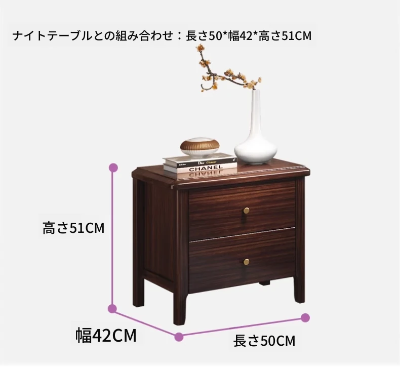 ベッド+ナイトスタンド*2+七つ星ベルベットラテックスマットレス