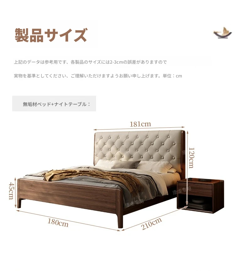 【エクスクルーシブ版】無垢材ベッド+ナイトスタンド*1
