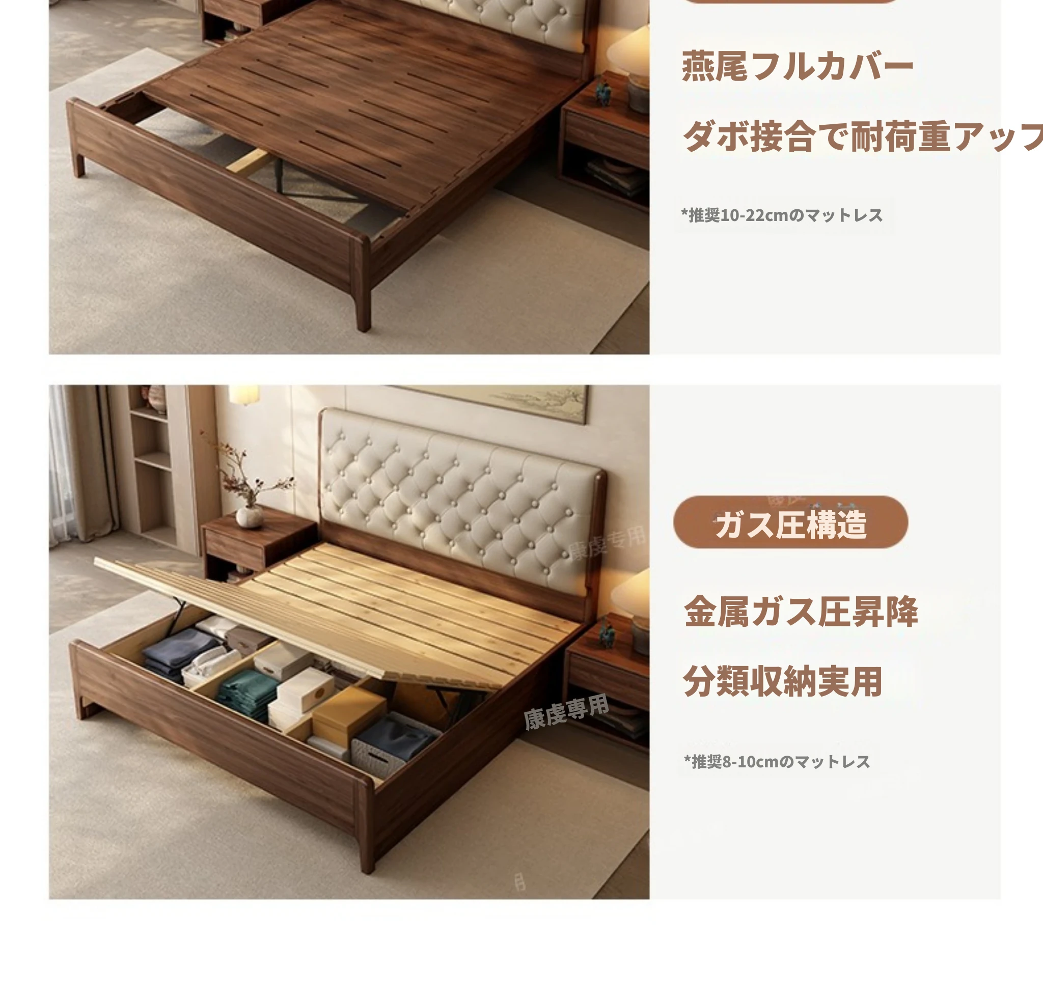【エクスクルーシブ版】無垢材ベッド+背中を守る3Dココナッツマットレス(10/22cm)