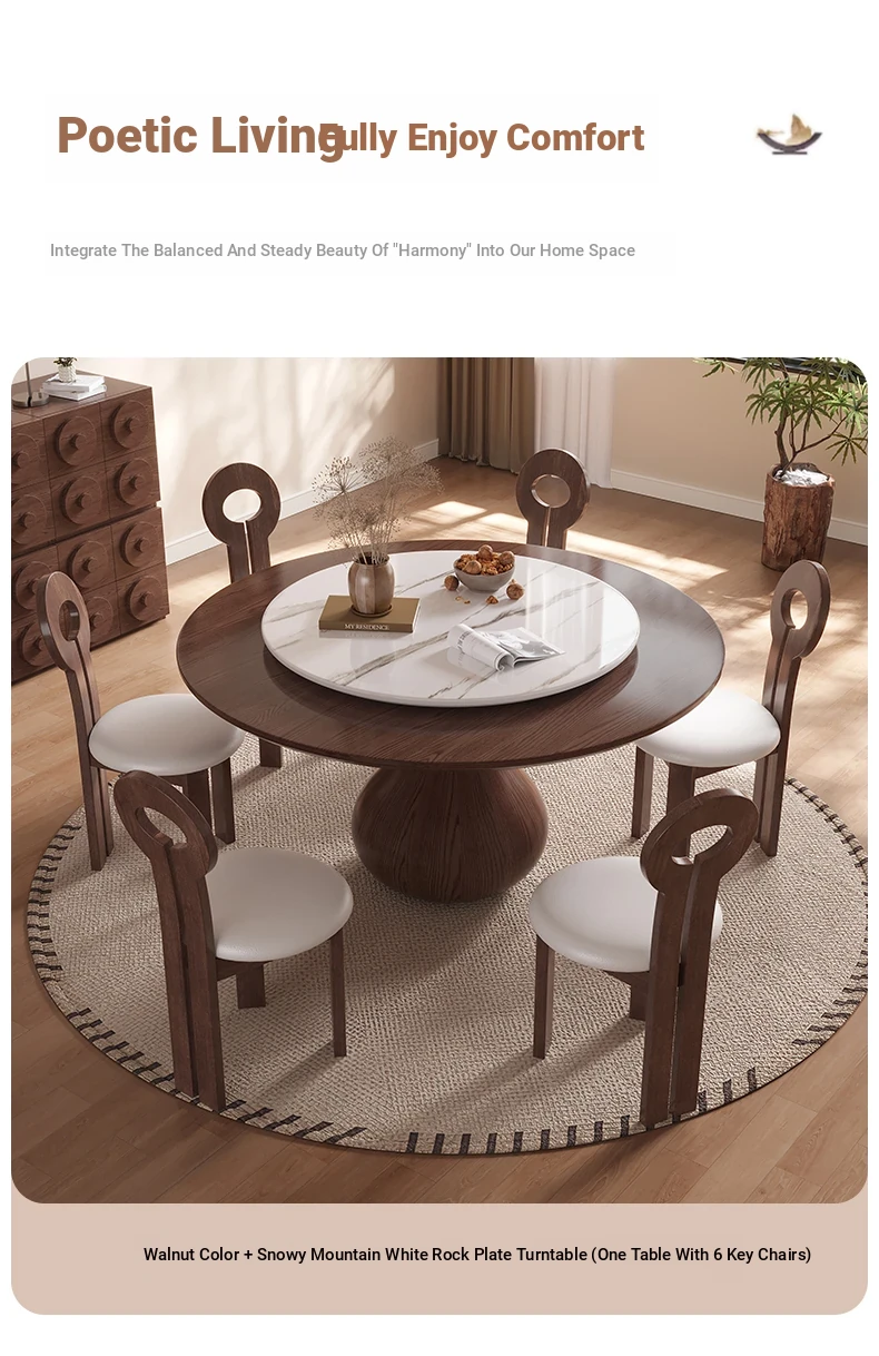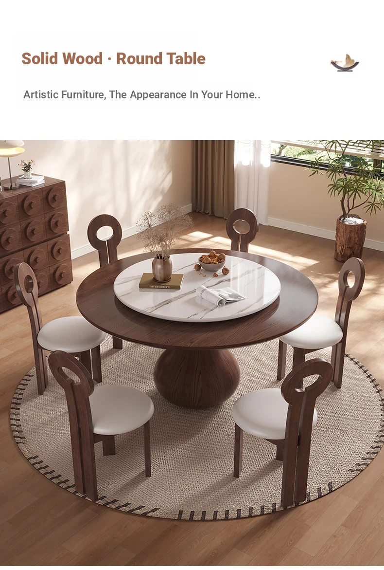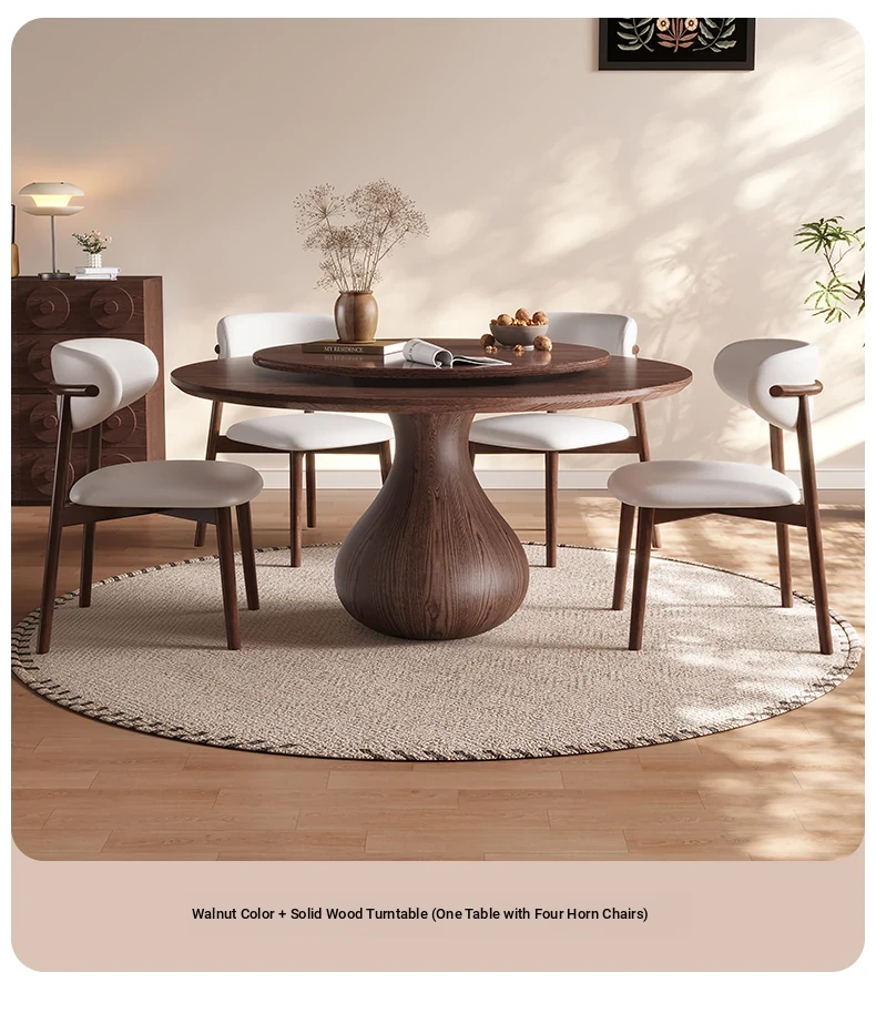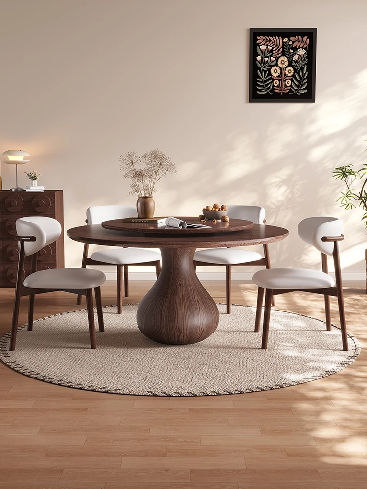 Vintage Italian Black Walnut Round Dining Table - Solid Wood, Retro Design for Home Use, Perfect for Family Meals and Stylish Dining Experiences.