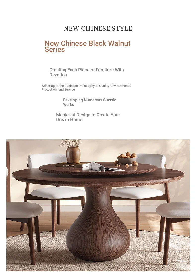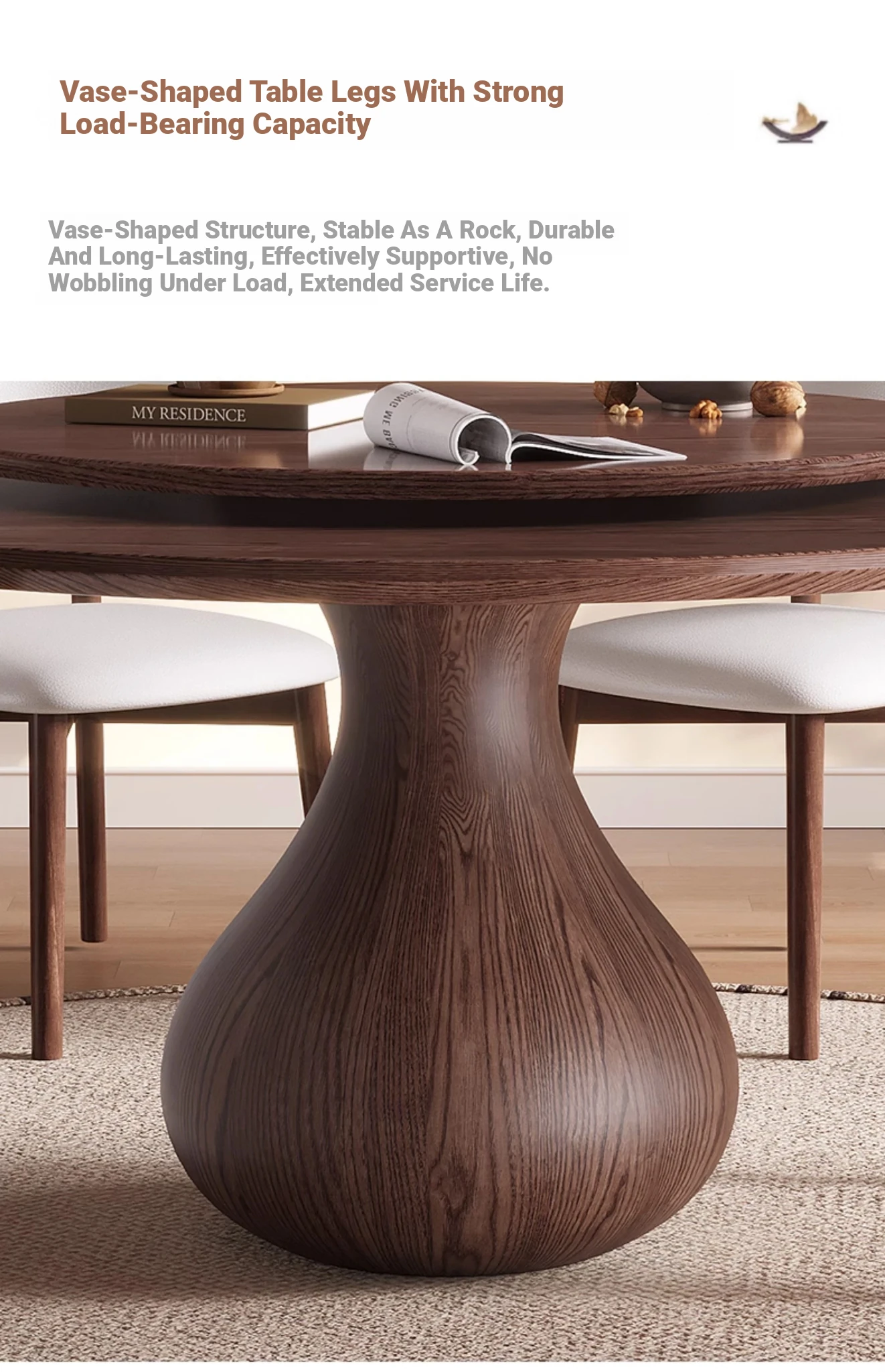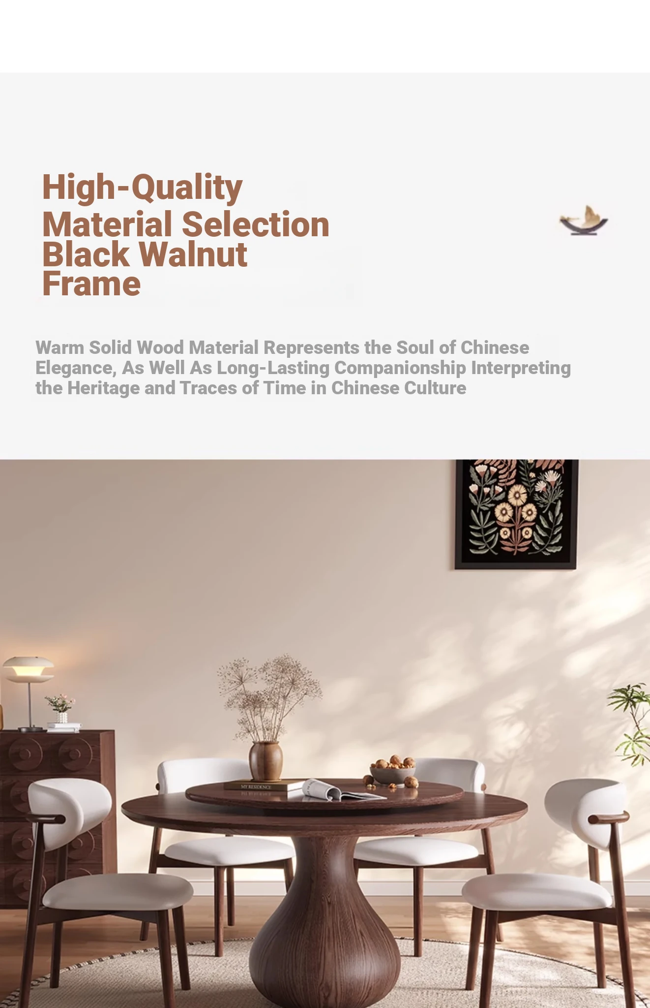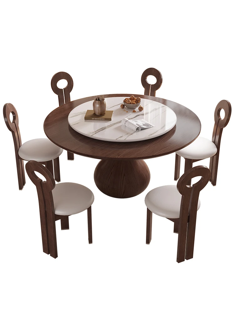 Vintage Italian Black Walnut Round Dining Table - Solid Wood, Retro Design for Home Use, Perfect for Family Meals and Stylish Dining Experiences.