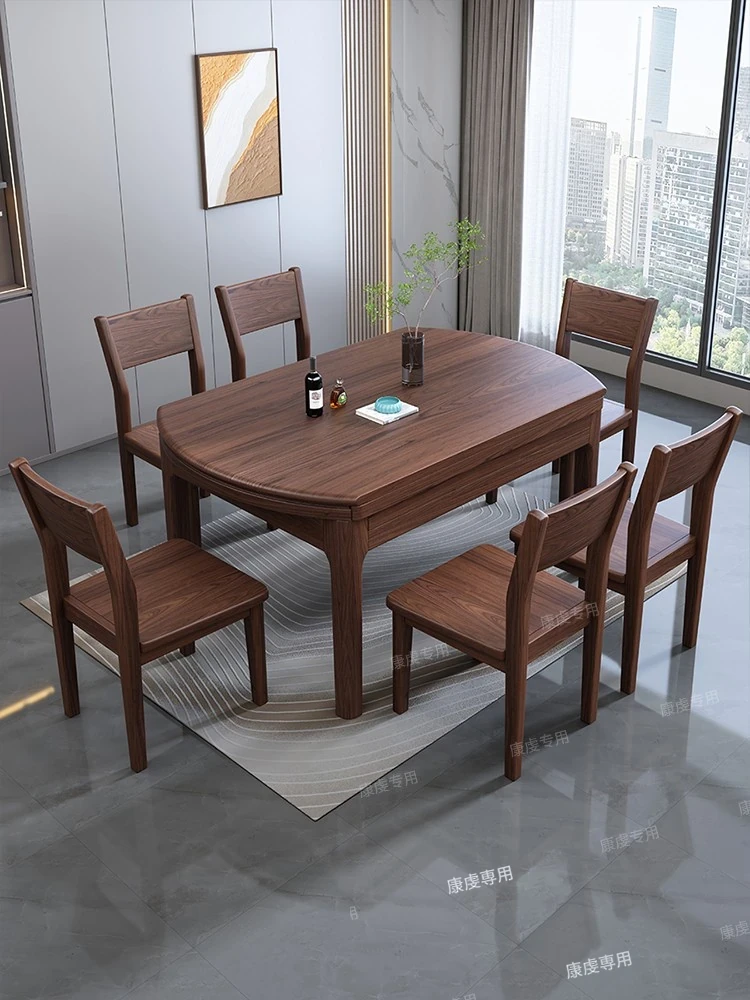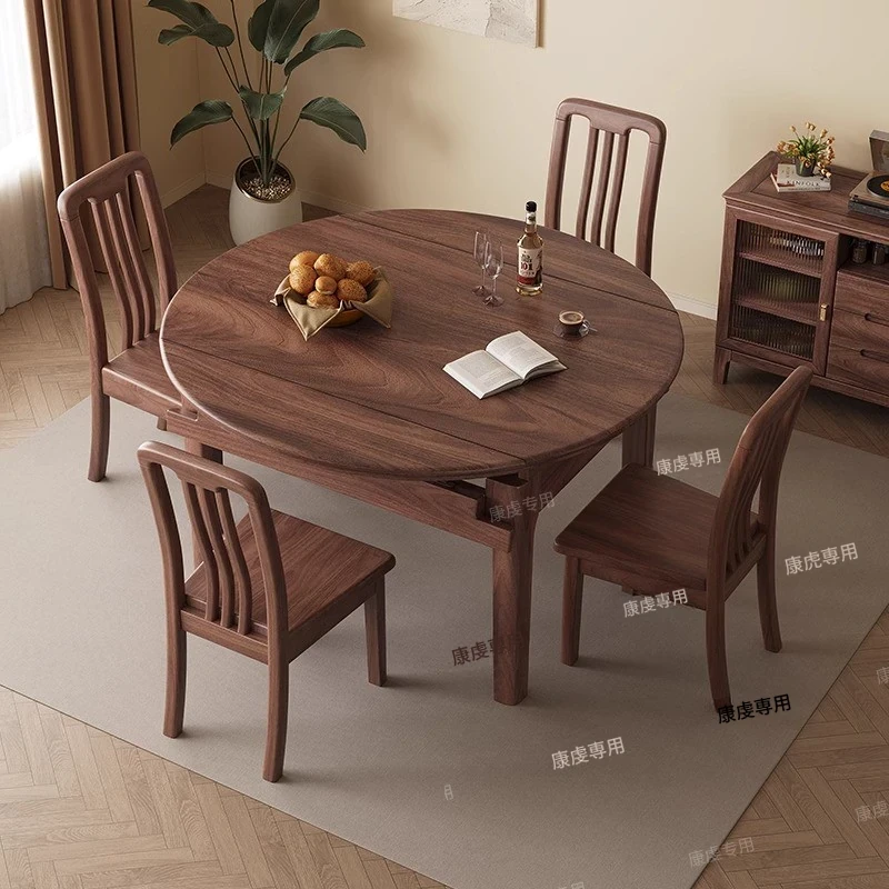 新中式ウッディウッド実木折りたたみダイニングテーブルセット - 円形と四角形の2WAYデザイン、伸縮自在で家族の食事にぴったり!おしゃれで機能的な食卓をお楽しみください。