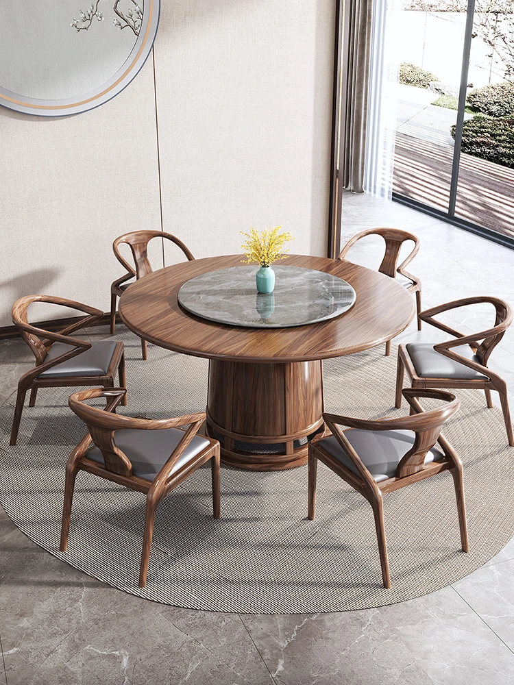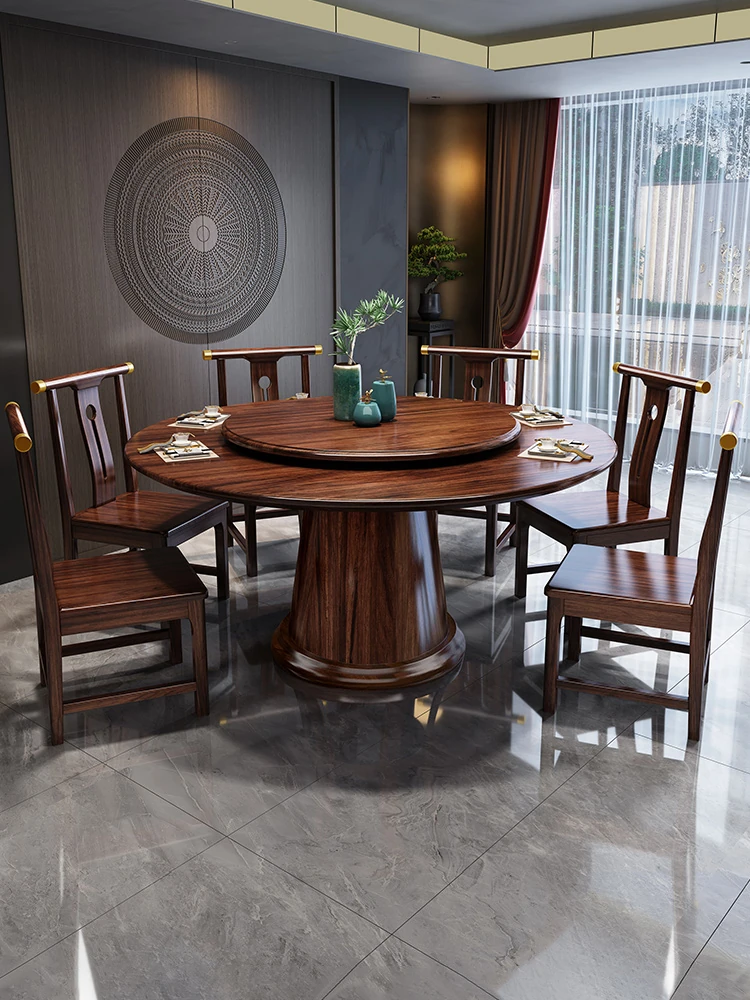 新中式ウッディブラックウッド製大丸テーブル&チェアセット - モダンでシンプルなデザイン、回転式で使いやすく、家族団らんにぴったりな食卓家具!